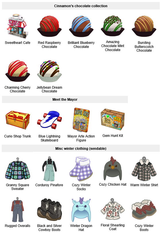 Each gift contains one of four NEW prizes: Mayor Arte Action Figure, Blue Lightning Skateboard, Curio Shop Trunk, or Gem Hunt Kit that you can drag into a room and click on to open.