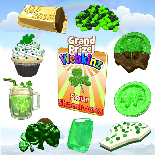 6 returning prizes: Leprechaun Hat, Leprechaun Pants, Leprechaun Jacket, Leprechaun Shoes, Mug of Shamrock Root Beer, Shamrock Headband
