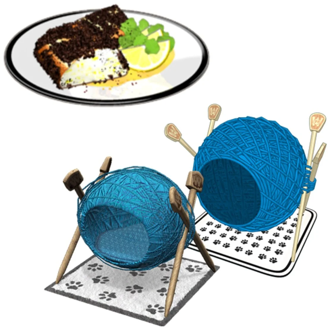 Black and White Cat PSI: Yarn Ball Cocoon Bed & PSF: Blackened Cod