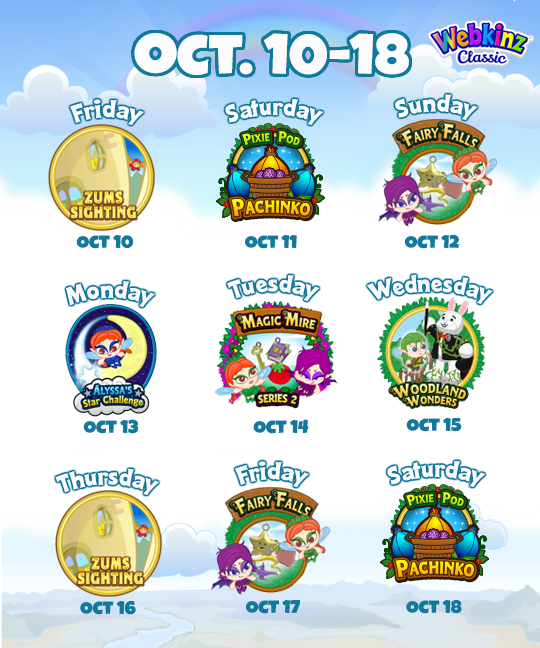 Friday, 10/10 - Saturday, 10/18 log in to your Webkinz Classic account to get three free plays in the Magical Forest every day!